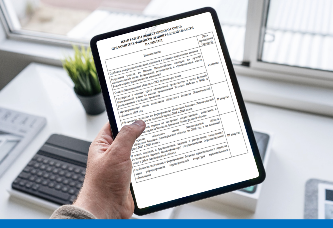 Опубликован план работы Общественного совета при Комитете финансов Ленинградской области на 2026 год